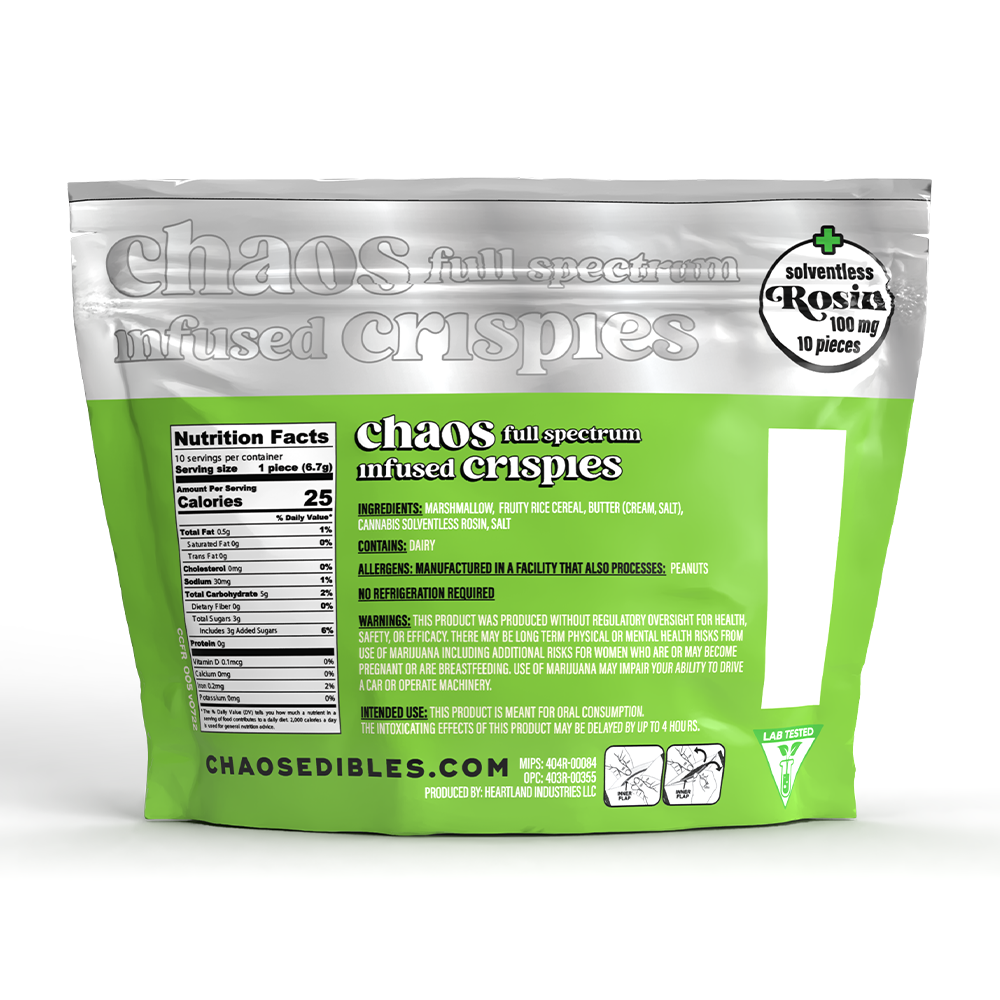 That’s why CHAOS is a name you can trust, known for our best-selling Crispies and a brand that practically shouts quality from the rooftops!
